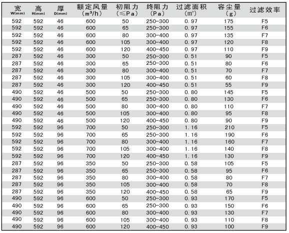 折疊式板式中效過濾器技術參數,用戶選型指南